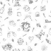 Zdjęcie "Szkic wzór - bez szwu. Sezon jesień." może być wykorzystywane do celów osobistych i komercyjnych zgodnie z warunkami zakupionej licencji Royalty-free. Obraz jest dostępny do pobrania w jakości wysokiej rozdzielczości do 5760x3840.