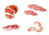 Zestaw produktów mięsnych kreskówka pyszne Grill kebab wiele wyśmienitych posiłków i zwierząt asortyment kawałek baranka gotowane ilustracja wektorowa