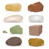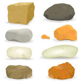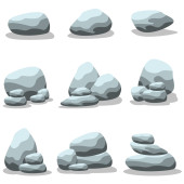 Zestaw oddzielone kreskówka głazy, skał i kamieni o różnych kształtach, izolowana na białym tle
