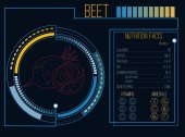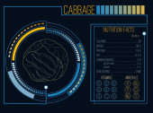 Brokuły. Wartości odżywcze. Witaminy i minerały. Futurystyczny interfejs. HUD infografikę elementów. Płaska konstrukcja, nie gradientu. Ilustracja wektorowa