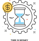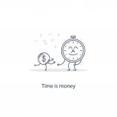 Gotówki szkła pakiet i piasku, czas jest koncepcja pieniądza, ikony linii inwestycji finansowych