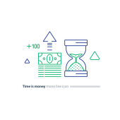 Zdjęcie "Gotówki szkła pakiet i piasku, czas jest koncepcja pieniądza, ikony linii inwestycji finansowych" może być wykorzystywane do celów osobistych i komercyjnych zgodnie z warunkami zakupionej licencji Royalty-free. Obraz jest dostępny do pobrania w jakości wysokiej rozdzielczości do 5760x3840.