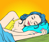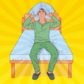 Kobieta po nieprzespanej nocy. Bezsenność. Ilustracja wektorowa retro pop-artu