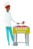Zdjęcie "Kucharz, gotowanie zdrowe sałatki warzywne." może być wykorzystywane do celów osobistych i komercyjnych zgodnie z warunkami zakupionej licencji Royalty-free. Obraz jest dostępny do pobrania w jakości wysokiej rozdzielczości do 5760x3840.