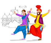 Bhangra tancerzy w krajowych tkaniny wektor ilustracja na białym tle.