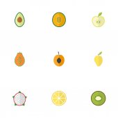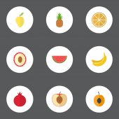 Płaski, deser egzotyczny, owoców dżungli, Pitaya i innych elementów wektora. Zbiór owoców płaskie symboli zawiera także dżungli, Orange, Granat obiektów.