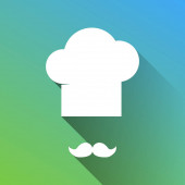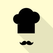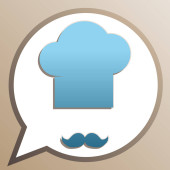 Szef kuchni kapelusz i wąsy znak. Wektor. Niebieska ikonka z konspektu do wycinania na szarym tle.