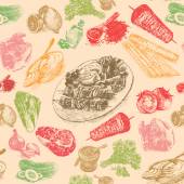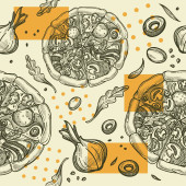 Zdjęcie "Warzyw i potraw, freehand wektor wzór. " może być wykorzystywane do celów osobistych i komercyjnych zgodnie z warunkami zakupionej licencji Royalty-free. Obraz jest dostępny do pobrania w jakości wysokiej rozdzielczości do 5760x3840.
