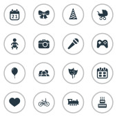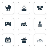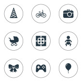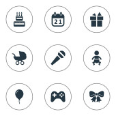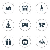 Wektor ilustracja zestaw ikon proste Holiday. Elementy pole, Cap, słodycze i inne synonimy rodziny, Data i przewozu.
