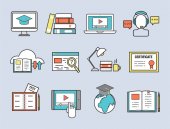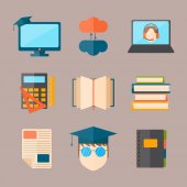 Edukacji i szkole wektor ilustracja web ikonę zestaw symboli absolwent kolegium szkolenia.