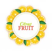 Okrągłe, białe etykiety na tle owoców cytrusowych pomarańczy. Wektor ilustracja karta.