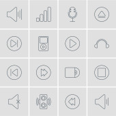 Ilustracja wektorowa 16 ikon muzyki. Edytowalne opakowanie po kolejnych, głośniej, Mp3 i inne elementy.