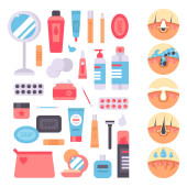 Ikony makijaż perfumy tusz do rzęs Pielęgnacja szczotki grzebień do czynienia eyeshadow seksowny kobiece akcesoria wektor.