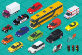 Ikony samochodu. Płaski 3d izometryczny wysokiej jakości transportu miejskiego. Zestaw urban publicznego i transportu towarowego
