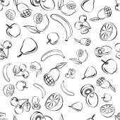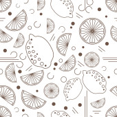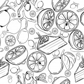 Owoce morza Seamless Pattern. Krewetki lub krewetki i cytryny tła. Na białym tle na białym tle Doodle kreskówka Vintage szkic wektor ilustracja.