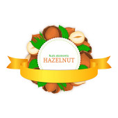Kwadrat biały rama i prostokąt etykiety na tle orzechowy orzechów laskowych. Wektor ilustracja karta.