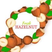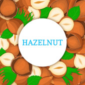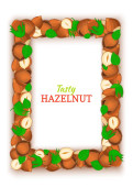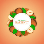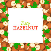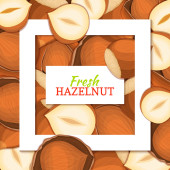 Kwadrat biały rama i prostokąt etykiety na tle orzechowy orzechów laskowych. Wektor ilustracja karta