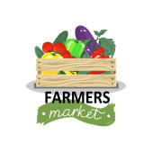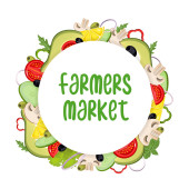 Okrągłe baner dla rolników rynków i menu z warzywami.