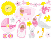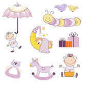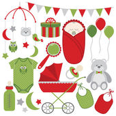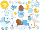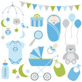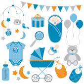 Wektor Baby Boy zestaw. Baby prysznicem wektor clipartów ilustracja.
