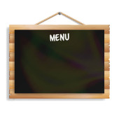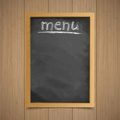 Cafe Menu płyty. Na białym tle na białym tle. Realistyczne pusta tablica czarny z wiszące rama drewniana. Ilustracja wektorowa