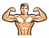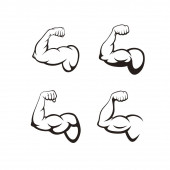 Silnego męskiego ramienia, mięśnie rąk, biceps ikona lub symbol. Siłownia, zdrowie, logo białka. Ilustracja kreskówka wektor