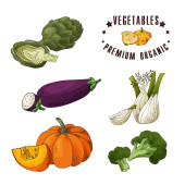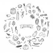 Ręcznie rysowane warzywa i owoce. Wektor świeży kolekcji naturalnej żywności. Szkic ilustracji