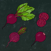 Kurczaka lub zestaw części ciała Turcja. Filety z mięsa drobiu, szynka, cholewka ze skóry i zioła. Na białym tle na tle czarny Chalkboard. Realistyczne Doodle kreskówka styl szkic wektor ilustracja.