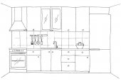 Zdjęcie "Nowoczesna kuchnia. Meble kuchenne, zlewozmywak, płytę grzejną i Ekstraktor. Ilustracja wektorowa w stylu liniowe." może być wykorzystywane do celów osobistych i komercyjnych zgodnie z warunkami zakupionej licencji Royalty-free. Obraz jest dostępny do pobrania w jakości wysokiej rozdzielczości do 5760x3840.