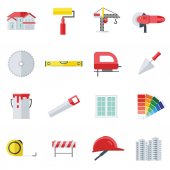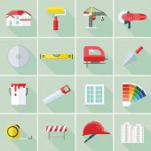 Zestaw ikon budowlane w Płaska konstrukcja z długich cieni