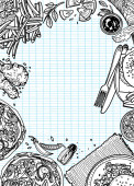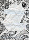 Fast food tła. Grafika liniowa. Kolekcja przekąska. Śmieci foo