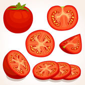 Realistyczny szczegółowe czerwony pomidor i części segmentu. Wektor