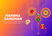 Karta okolicznościowa z dekoracyjnym Rakhi na tle Raksha Bandhan