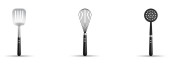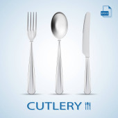 Wektor zestaw sztućce srebrne widelce, łyżki i noże A na białym tle na białe tło.