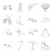 Rękawice, kombinezon, kask, trampki i innego sprzętu. Rowerzysta strój zestaw kolekcji ikon w www ilustracji symbol wektor styl linii.