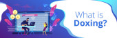 ilustracja koncepcja doxing z laptopa comuputer i banner na ekranie z płaski i długi cień tekstu