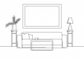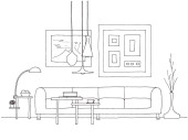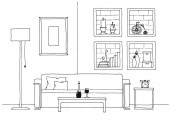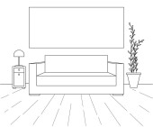 Zdjęcie "Nowoczesne wnętrza. Kanapa, Lampa podłogowa i stolik. Zegar wisi na ścianie. Przed kanapie jest dywan. Ilustracja wektorowa w stylu liniowe." może być wykorzystywane do celów osobistych i komercyjnych zgodnie z warunkami zakupionej licencji Royalty-free. Obraz jest dostępny do pobrania w jakości wysokiej rozdzielczości do 5760x3840.