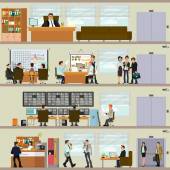 Ilustracja wektorowa płaski, scena ludzi pracujących w posterunek policji.