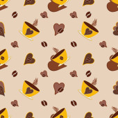 Bezszwowe tło z wzorem filiżanek Kawa i przepyszne pączki. Atrybuty kawa kolor kwiecisty wzór. Kawy szkic tło.
