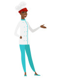 Młodych afroamerykańskich zły szef kuchni krzyczy.
