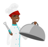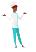 Zdjęcie "Afro-kucharz Wyświetlono gest zwycięstwa" może być wykorzystywane do celów osobistych i komercyjnych zgodnie z warunkami zakupionej licencji Royalty-free. Obraz jest dostępny do pobrania w jakości wysokiej rozdzielczości do 5760x3840.