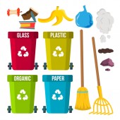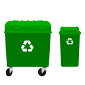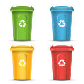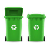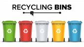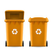 Czerwony recyklingu wektor wiadro pojemnik na śmieci metalowe. Otwarte i zamknięte. Widok z przodu. Znak strzałki. Ilustracja na białym tle