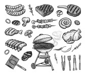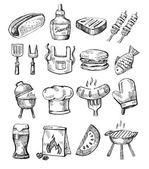 Zestaw ręcznie rysowane grill i bbq elementów projektu. Elementy dla po