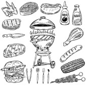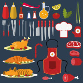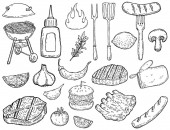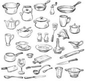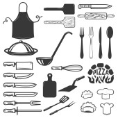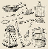 Zestaw narzędzi kuchennych wyciągnąć rękę. Projektowanie elementów menu, poste