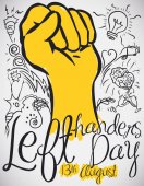 Tablica z znak pozdrowienie i kciuk w górę do dnia leworęcznych, ilustracji wektorowych