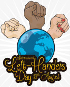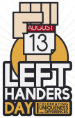 Ilustracja wektorowa okolicznościowy dla leworęcznych Międzynarodowy Dzień z gest kciuk,
