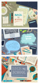Wektor zestaw kreskówka edukacji pionowych banerów.