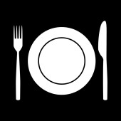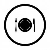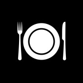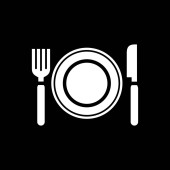 eps10 czarny ikona prosta sylwetka talerz i sztućce