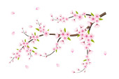 Sakura kwiatów tła. Wiśniowy kwiat na białym tle. Chiński Nowy rok