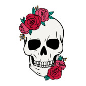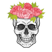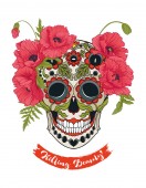 Zdjęcie "Ludzka czaszka z wieniec Czerwone maki na głowie." może być wykorzystywane do celów osobistych i komercyjnych zgodnie z warunkami zakupionej licencji Royalty-free. Obraz jest dostępny do pobrania w jakości wysokiej rozdzielczości do 5760x3840.