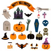 Zdjęcie "Happy halloween zestaw znaków w stylu cartoon naklejki z dyni, Pająk, ghost, bat i cukierki na tle papieru. Ilustracja wektorowa." może być wykorzystywane do celów osobistych i komercyjnych zgodnie z warunkami zakupionej licencji Royalty-free. Obraz jest dostępny do pobrania w jakości wysokiej rozdzielczości do 5760x3840.